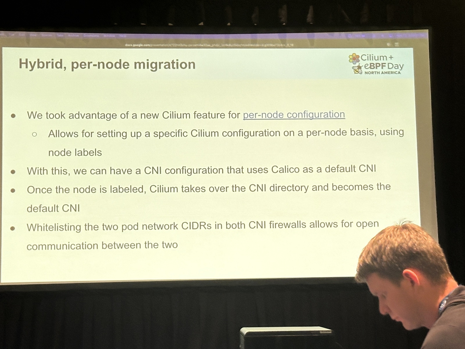 Day 3 of KubeCon 2024 satellite events featuring Cilium + eBPF Day, with talks on IPSec acceleration, CNI migration, and Hubble alternatives.